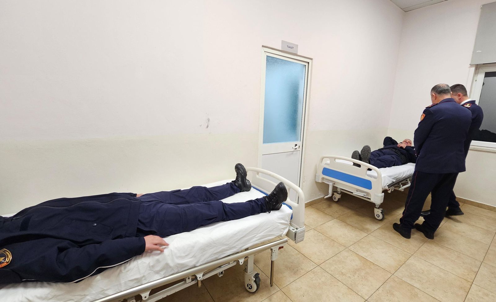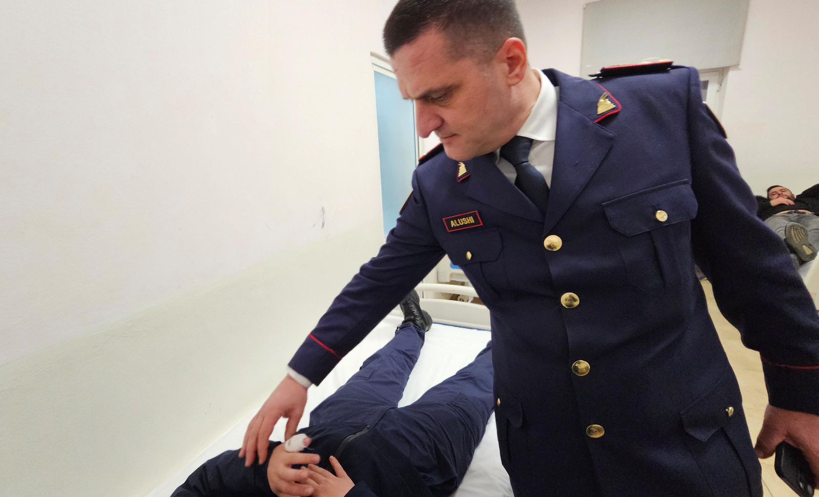 Drejtori i DVP Tiranë, Drejtues Elton Alushi, dhe Zëvendësdrejtori i Rendit kanë vizituar punonjësit e lënduar në ambientet e spitalit, duke u siguruar që ata të marrin çdo ndihmë të nevojshme, në bashkëpunim me stafin mjekësor./Radar.al
