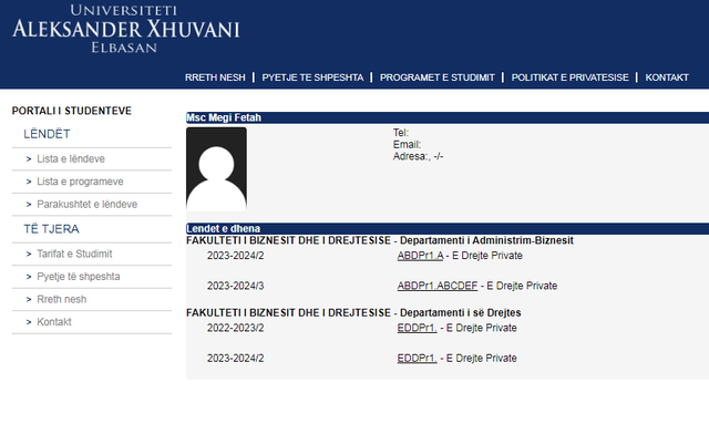 Megi Fetah, edhe pse në një post si pedagoge, është shumë e vështirë për të gjetur një foto të portretit të saj, ku fotoja e saj mungon edhe tek “website” i universitetit, ndryshe nga pedagogët e tjerë.