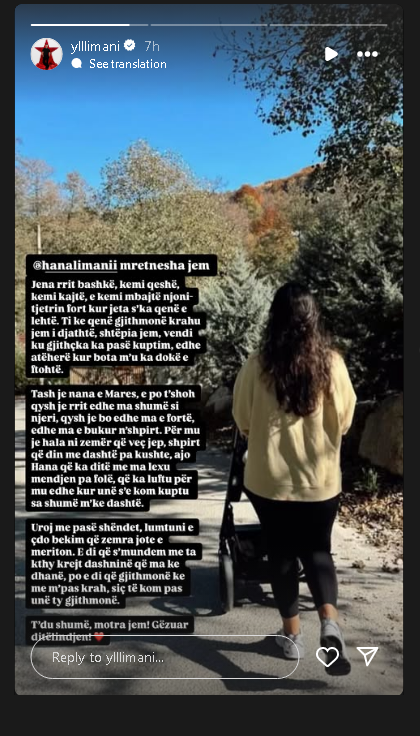 Për ditëlindje Ylli i ka bërë një urim të gjatë mjaft emocional ku ndër të tjera shkruan: Për mu je hala nji zemër që vec jep, shpirt që din me dashtë pa kushte, ajo Hana që ka ditë me ma lexu mendjen pa folë, që ka luftu për mu edhe kur unë se kom kuptu sa shumë mke dashtë’./Radar.al